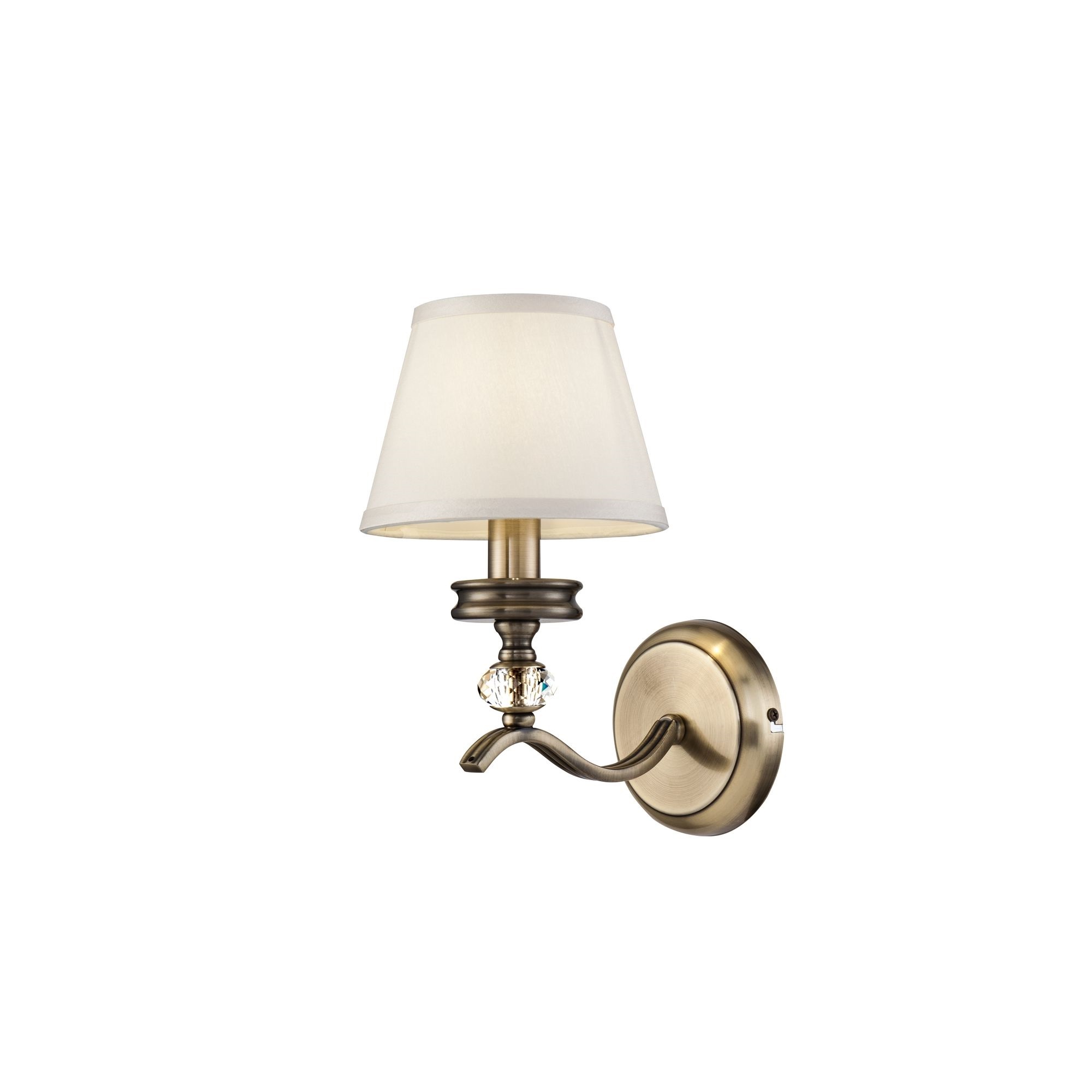 Элегантные светильники в классическом стиле. Металлическая арматура светильников Alessandra цвета латуни сочетается с кремовым цветом абажуров из ткани. Абажуры окантованы лентой в тон. Дизайн арматуры дополнен декоративным элементом из стекла.