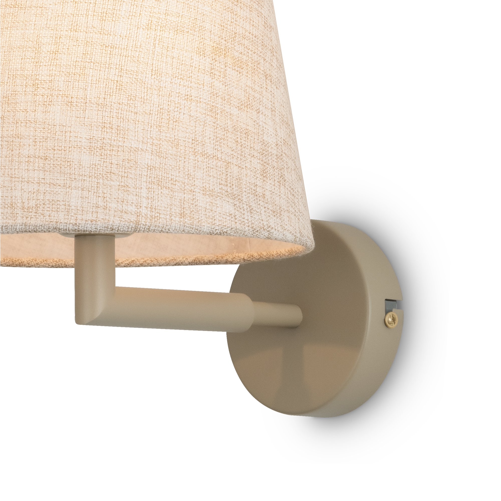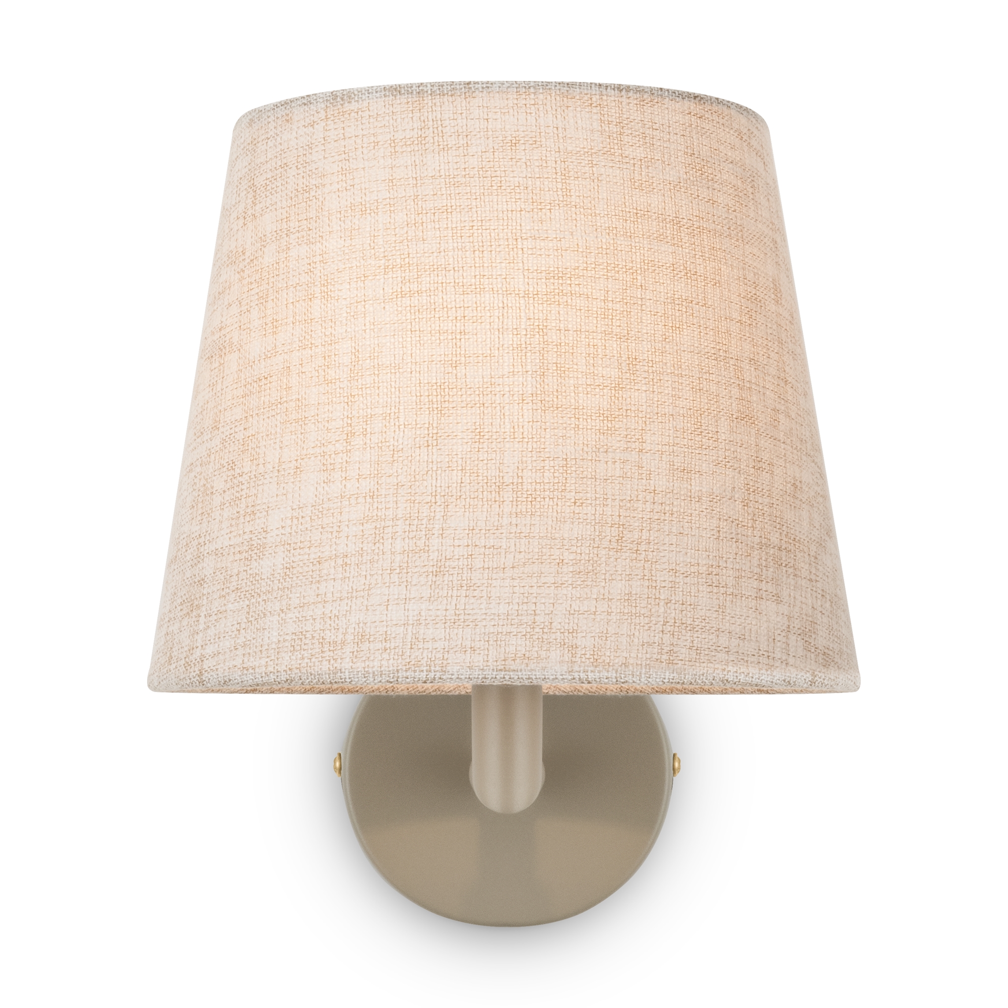 Металлическая арматура в цвете RAL 1019. Тканевые абажуры в светлых оттенках. Лампа E27 (не в комплекте).Бра с двумя источниками освещения Led и цоколь E27. Разнообразие типов светильников в серии.
