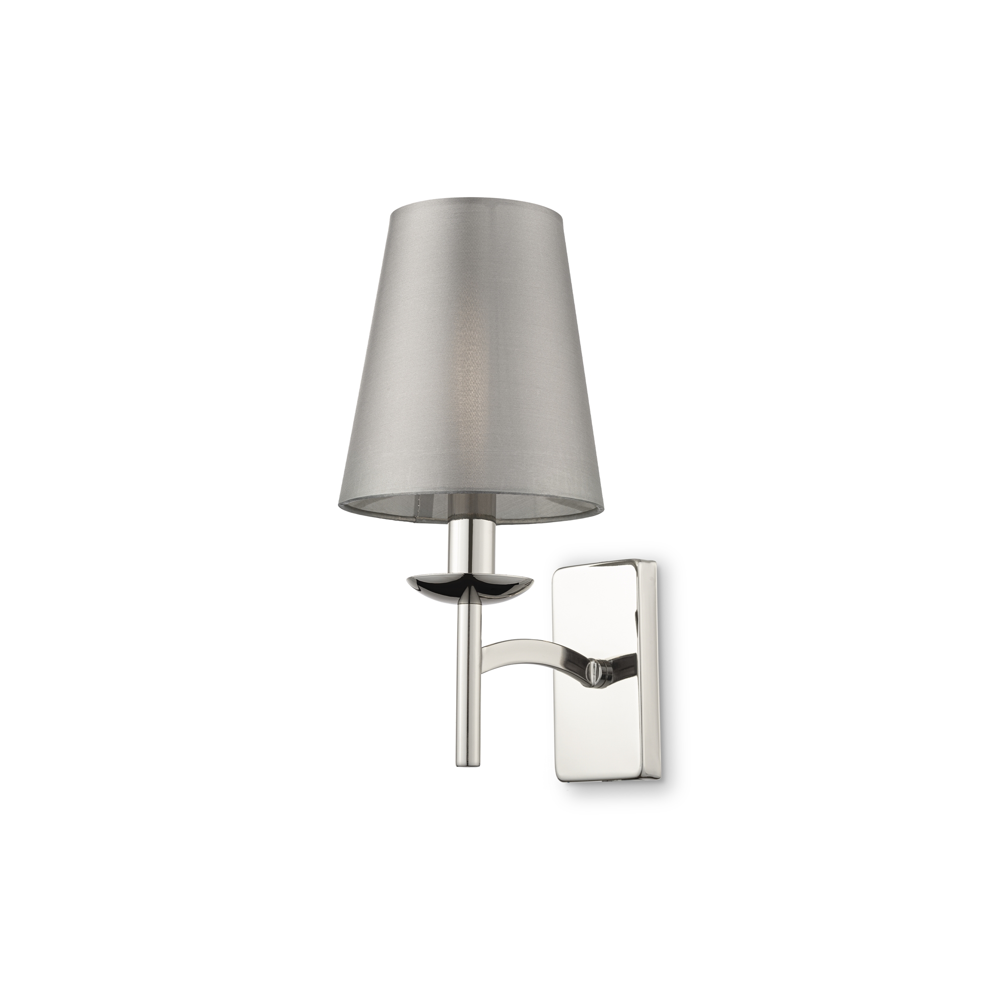 Материал арматуры – металл, цвет – никель. Абажуры из текстиля, нанесенного на ПВХ. Цвет абажуров – серый. Декор - граненые кристаллы.