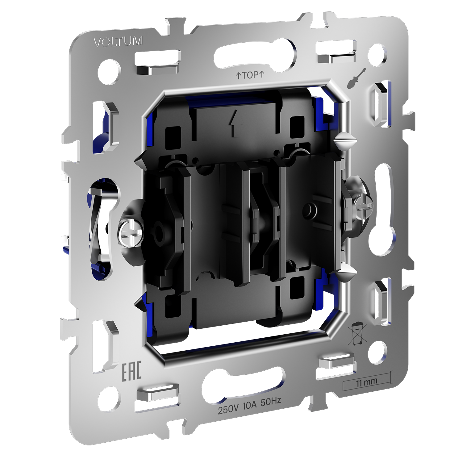 Место установки. Механизмы для классических выключатели устанавливаются в комнатах и помещениях, где требуется управление освещением из одной точки. Для жалюзи, рольставен, штор, ворот и других подобных устройств идеально подходят механизмы выключателей с функцией самовозврата. Конструктивные особенности. Механизм самозажима в выключателях позволяет надежно соединить провод с клеммой, не прибегая к помощи специальных инструментов. Инженеры Voltum разработали конструкцию, которая монтируется всего в несколько движений.