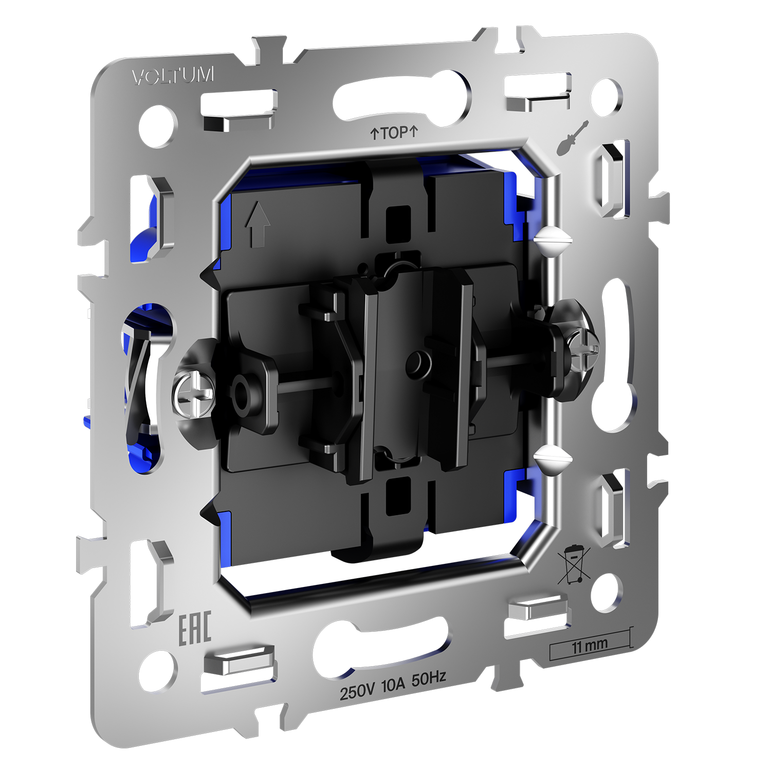 Место установки. Механизмы для классических выключатели устанавливаются в комнатах и помещениях, где требуется управление освещением из одной точки. Для жалюзи, рольставен, штор, ворот и других подобных устройств идеально подходят механизмы выключателей с функцией самовозврата. Конструктивные особенности. Механизм самозажима в выключателях позволяет надежно соединить провод с клеммой, не прибегая к помощи специальных инструментов. Инженеры Voltum разработали конструкцию, которая монтируется всего в несколько движений.