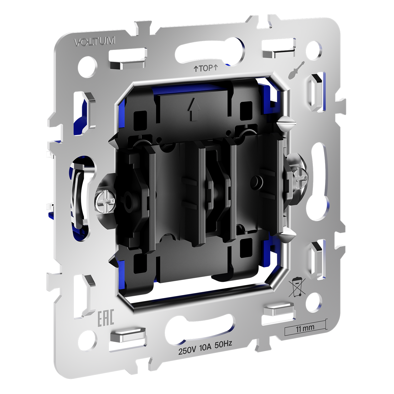 Место установки. Механизмы для классических выключатели устанавливаются в комнатах и помещениях, где требуется управление освещением из одной точки. Для жалюзи, рольставен, штор, ворот и других подобных устройств идеально подходят механизмы выключателей с функцией самовозврата. Конструктивные особенности. Механизм самозажима в выключателях позволяет надежно соединить провод с клеммой, не прибегая к помощи специальных инструментов. Инженеры Voltum разработали конструкцию, которая монтируется всего в несколько движений.