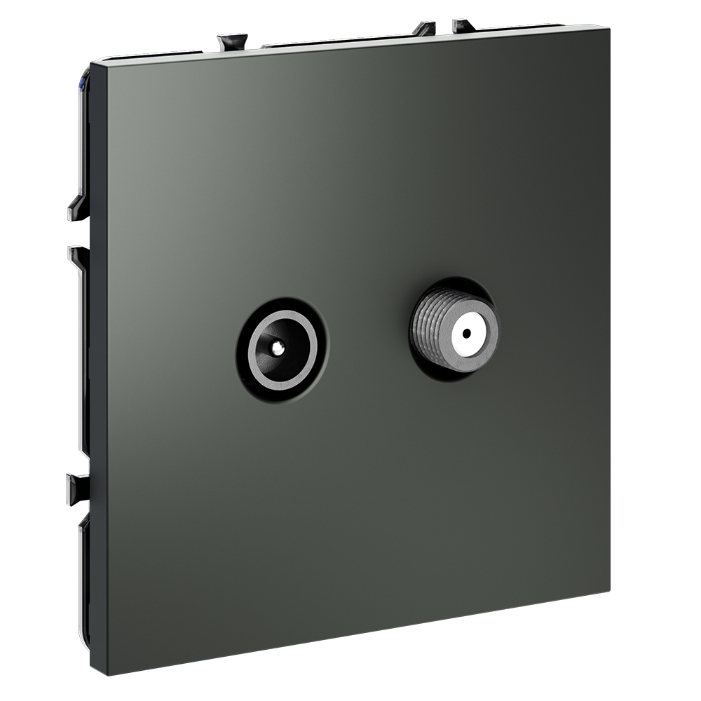 Место установки. Телевизионные розетки актуальны везде, где требуется передача сигнала на телевизор посредством кабельного или спутникового подключения. Корпус. TV+SAT розетка «прячет» внутри стены неприглядный провод и упрощает подключение телевизора. Внешний вид — лаконичный, без лишних деталей. Корпус выполнен из термостойкого поликарбоната. Конструктивные особенности. Телевизионная розетка позволяет одновременно подключить ТВ к кабельному (TV) и спутниковому (SAT) сигналам. Возможно объединение в одной рамке нескольких типов розеток: например, телевизионной для передачи сигнала и обычной для питания телевизора. Серия S70 доступна в модульной системе: механизм, накладка и рамка поставляются отдельно.