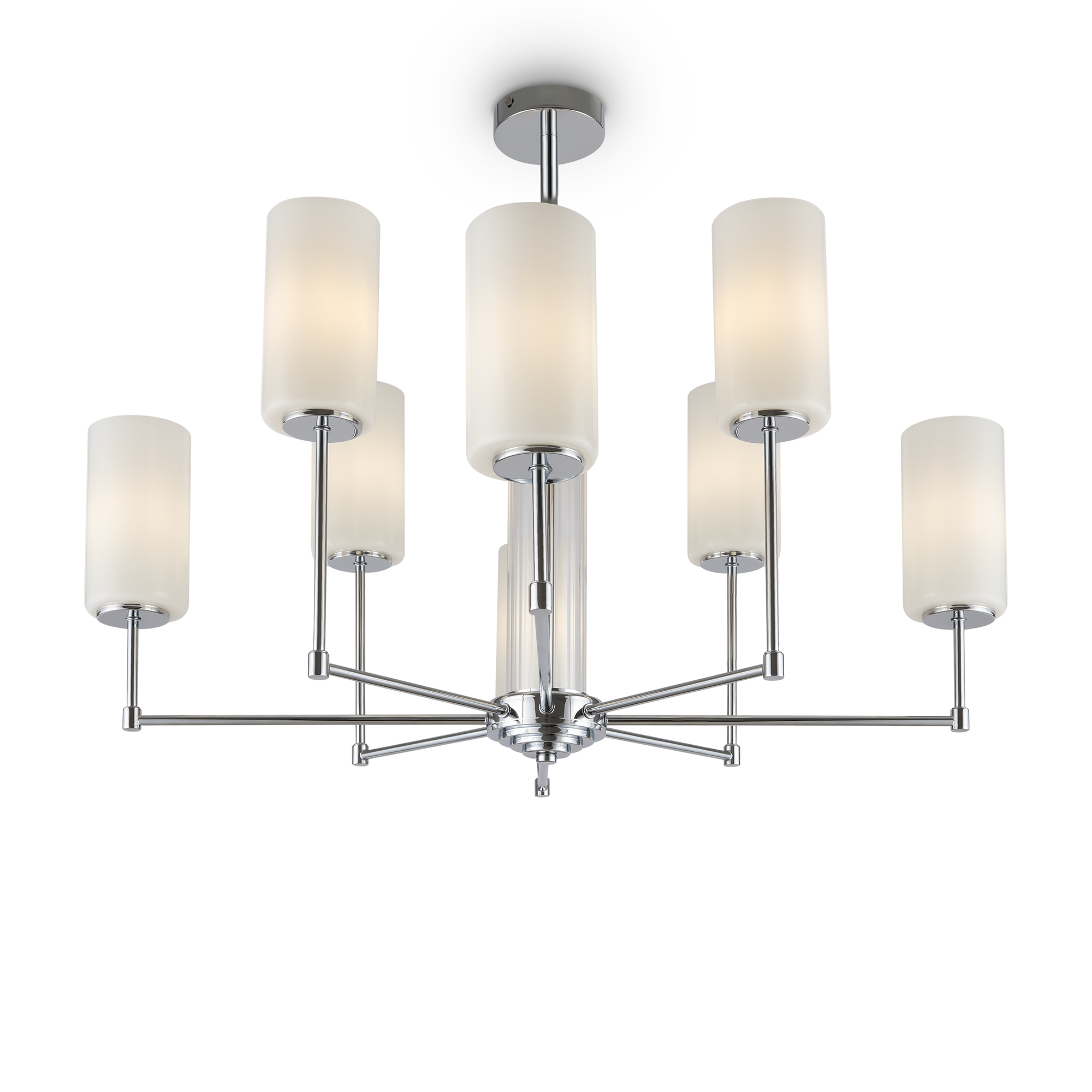 Выразительную силу простых художественных решений демонстрирует серия Agnes: дизайнеры отказались от стандартного одноуровневого расположения плафонов, разместив их на разной высоте. Всего одна деталь меняет настроение модели, а элегантная классика обретает современные черты. Арматура светильника выполнена из металла и окрашена в цвет латуни и хрома. Лаконичный силуэт дополняется стеклянным декором центрального стержня: рельефная фактура оттеняет гладкую поверхность рожков. Белые плафоны из полупрозрачного стекла мягко приглушают световой поток, делая его уютным и обволакивающим. Оригинальное дизайнерское решение позволяет использовать модель как в классических, так и в современных интерьерах с настроением ар-деко, строгой неоклассики или бунтарской эклектики. Люстры на 6 и 8 плафонов и бра – готовый ансамбль для комплексного освещения пространства в единой стилистике.
