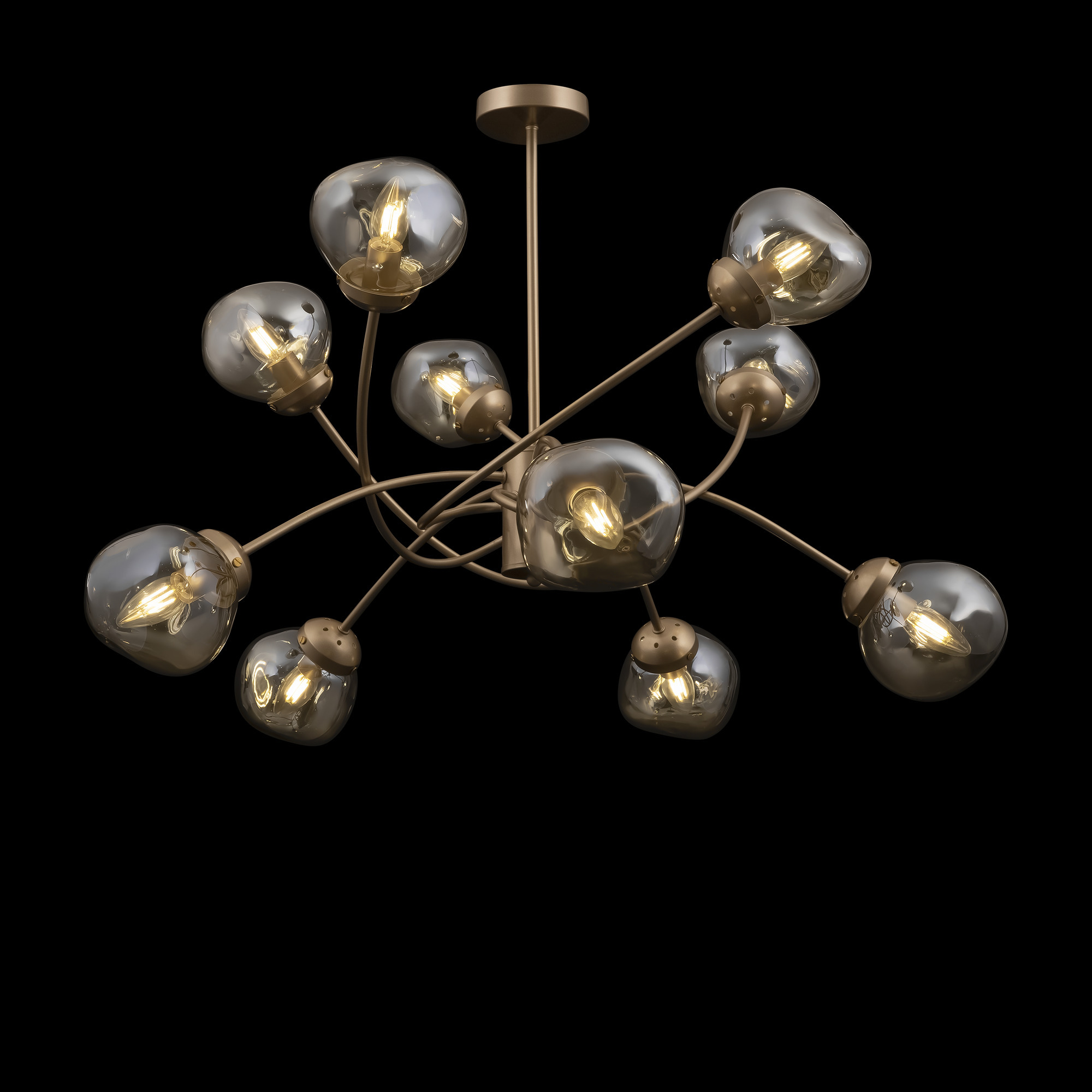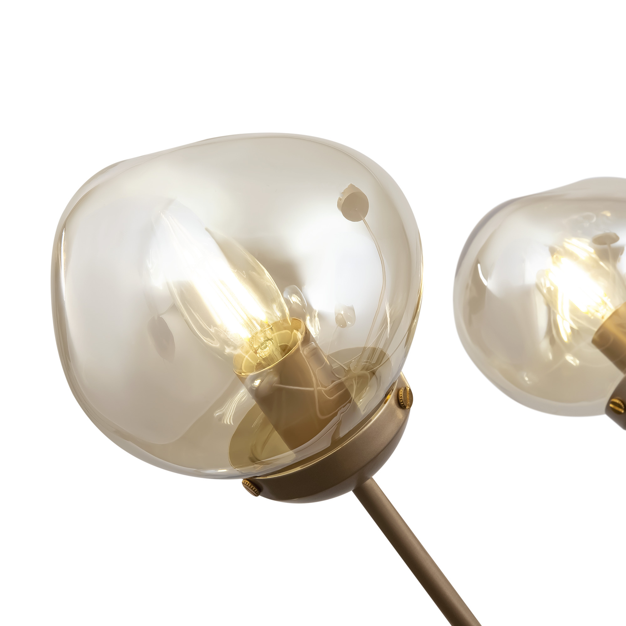 Динамика, скорость и ритм шумного мегаполиса отражены в сложных формах светильников Volani. Такой эффект достигается за счет конструктивных особенностей: рожки изогнуты под необычным углом, переплетаются друг с другом. Дизайнерское решение выгодно и с практической точки зрения: разнонаправленный световой поток обеспечивает равномерное и яркое освещение. Арматура из металла цвета матового золота идеально гармонирует с янтарными стеклянными плафонами. Теплая цветовая гамма добавит интерьеру уюта. Оригинальная форма плафонов поддерживает идею динамичного, движущегося дизайна. Наличие в серии люстр на 6, 8 и 10 ламп позволяет выбрать оптимальную мощность и интенсивность подсветки, исходя из размеров помещения. Завершить и дополнить световую инсталляцию поможет бра. Для интерьеров в стиле лофт, хай-тек, минимализм, mid-century modern серия Volani станет идеальным решением.