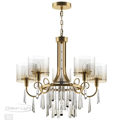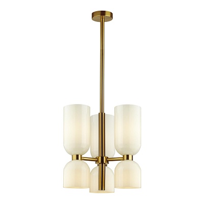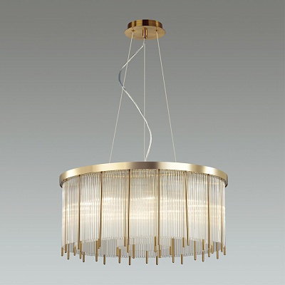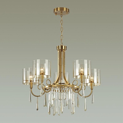 Металлическая арматура. Цвет – французское золото. Декор – рельефные лепестки двух видов: в тон арматуре и из прозрачного фактурного стекла. Современная интерпретация флористического дизайна. Источник света – лампа с цоколем Е14.
