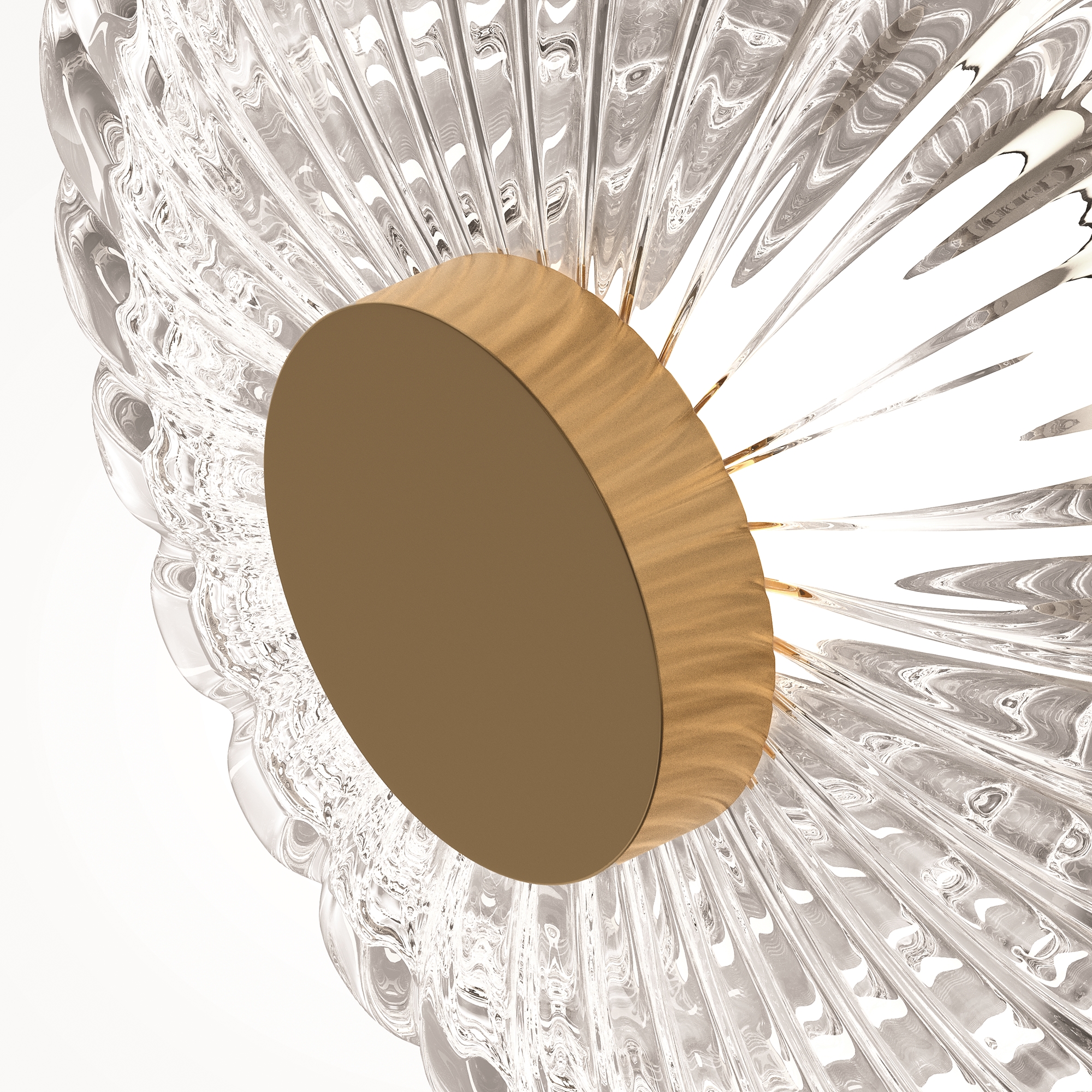 Арматура из металла, цвет – хром. Акцентный декор в виде рельефных сфер из литого стекла. Источник света – светодиодная лента – скрыта под акриловым рассеивателем. Регулируемая высота подвесных светильников.