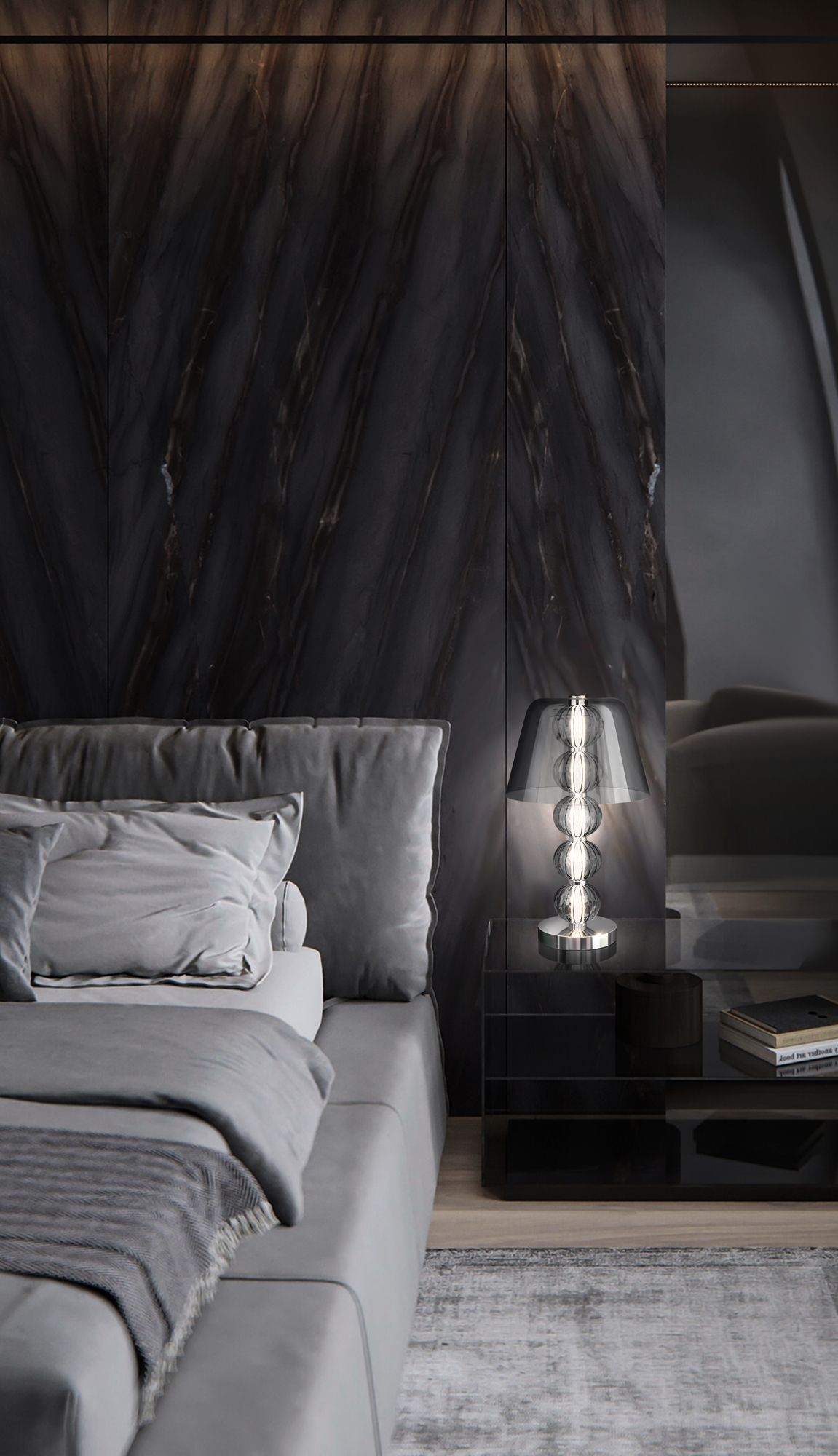 Арматура из металла, цвет – хром. Акцентный декор в виде рельефных сфер из литого стекла. Источник света – светодиодная лента – скрыта под акриловым рассеивателем. Регулируемая высота подвесных светильников.