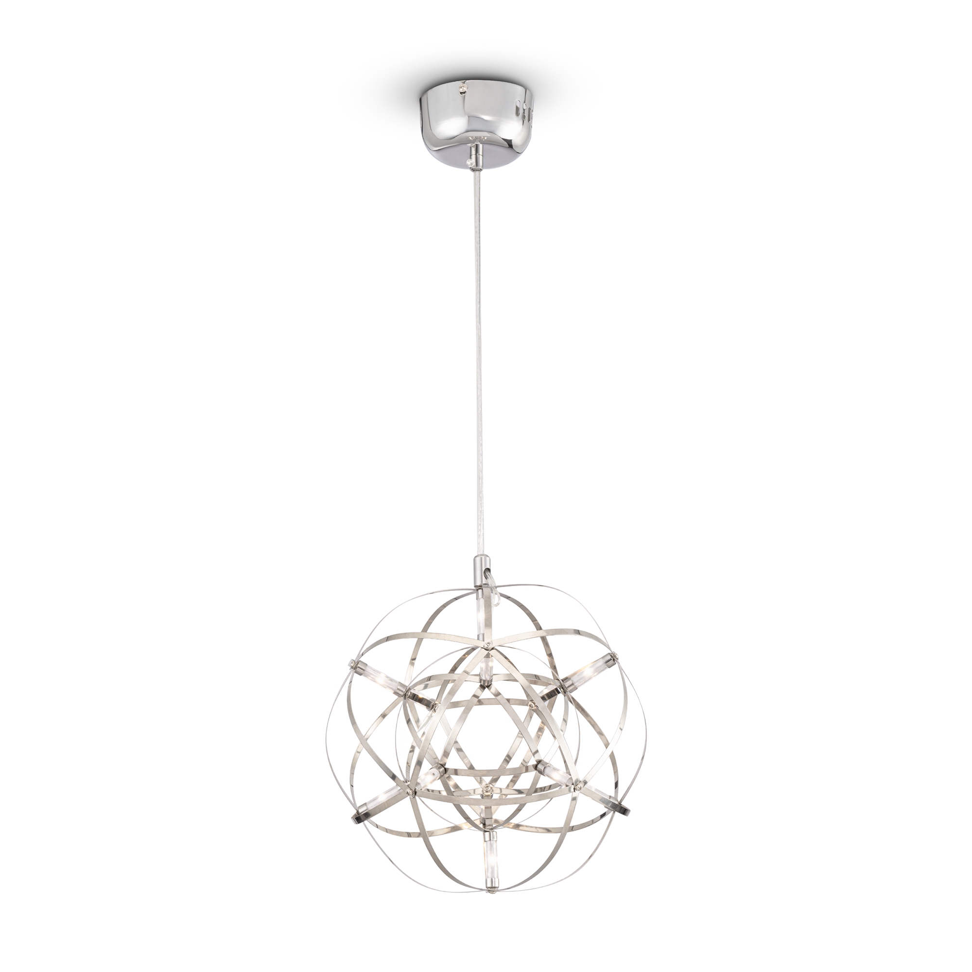 Серия Amber представляет воздушные светильники-сферы, выполненные в трендовом стиле хай-тек. Хромированная металлическая арматура и плафон, сотканный из переплетающихся лент, создают запоминающийся современный образ. Встроенные светодиоды экономят электроэнергию и красиво подсвечивают сферу. В выключенном состоянии светильник выглядит как абстрактное произведение искусства и является полноправной частью декоративного ансамбля интерьера. Серию составляют подвесы различного диаметра – их можно использовать по отдельности, а можно комбинировать в группы. Для обстановки в стиле хай-тек, минимализм, лофт, помещений кафе и ресторанов светильник станет идеальным решением.