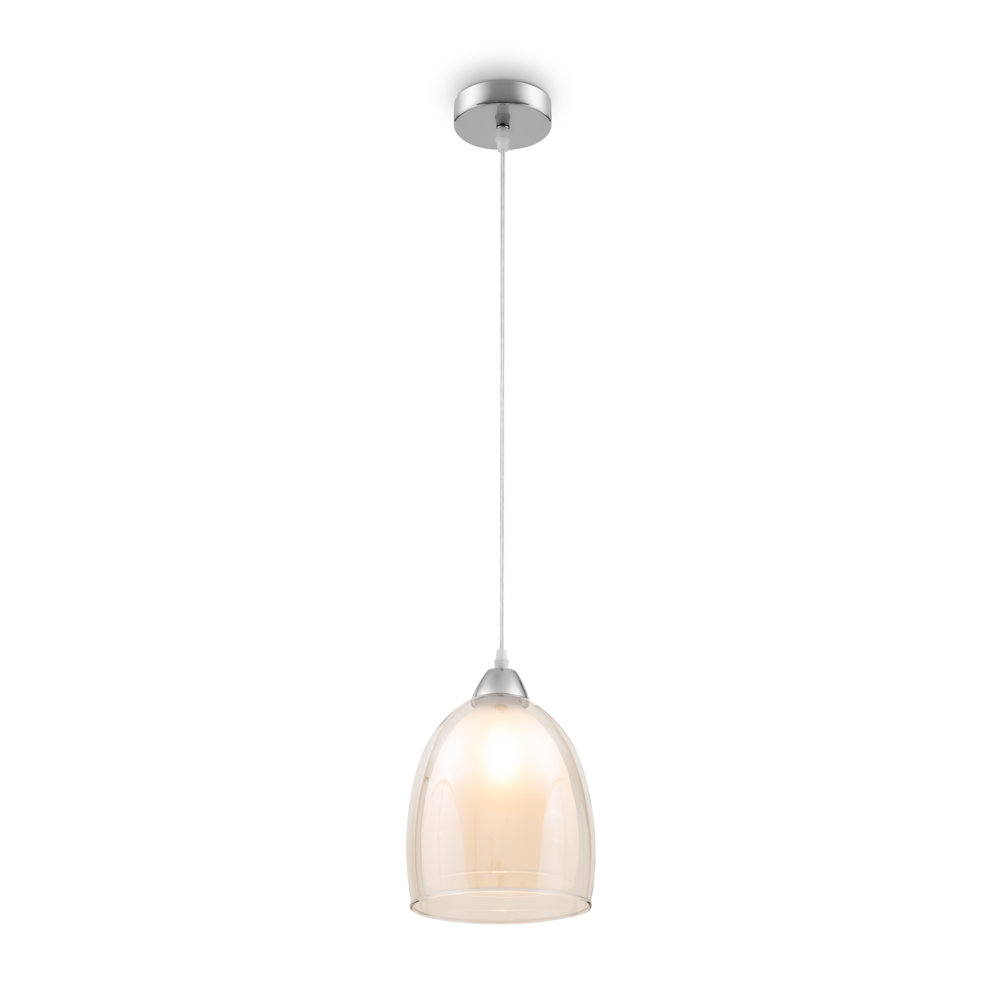Арматура из металла в цвете хром. Двойные стеклянные плафоны в 3-х оттенках: дымчатый, коньячный, прозрачный. Компактные светильники-каскады в 2-х комбинациях — с одним плафоном и тремя. Высота тросов регулируется. Источник света — лампа с цоколем Е27