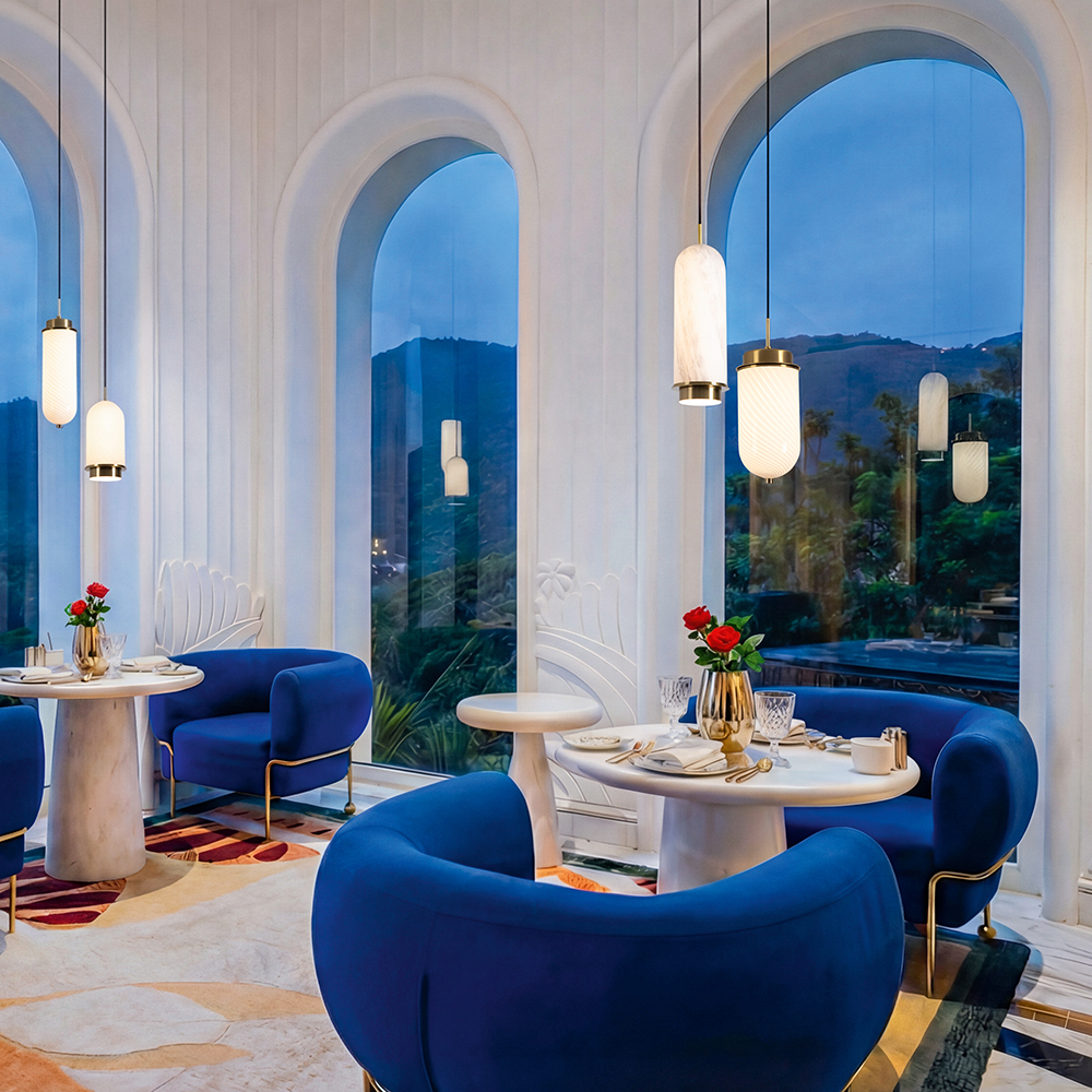 Арматура — металл. Стеклянные плафоны с имитацией мрамора и полосками в ретро-стиле. Интегрированный LED источник света 2700К, угол рассеивания 360°. Высота регулируется.