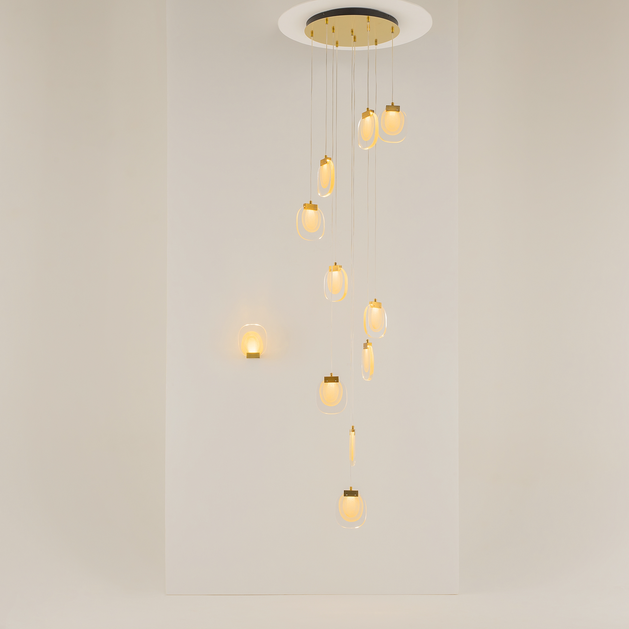 Арматура - металл, цвет - белый, черный. Плафоны окрашены в дымчатый или белый полупрозрачные цвета. В плафон установлен LED-источник света с мощным световым потоком — его интенсивность достигает 2000 Лм. Цветовая температура — 3000 К, угол рассеивания — 120 градусов. Внутренний рассеиватель из полупрозрачного акрила создает мягкое свечение. Предусмотрена функция диммирования: touch-переключатель обеспечивает плавное бесступенчатое управление.