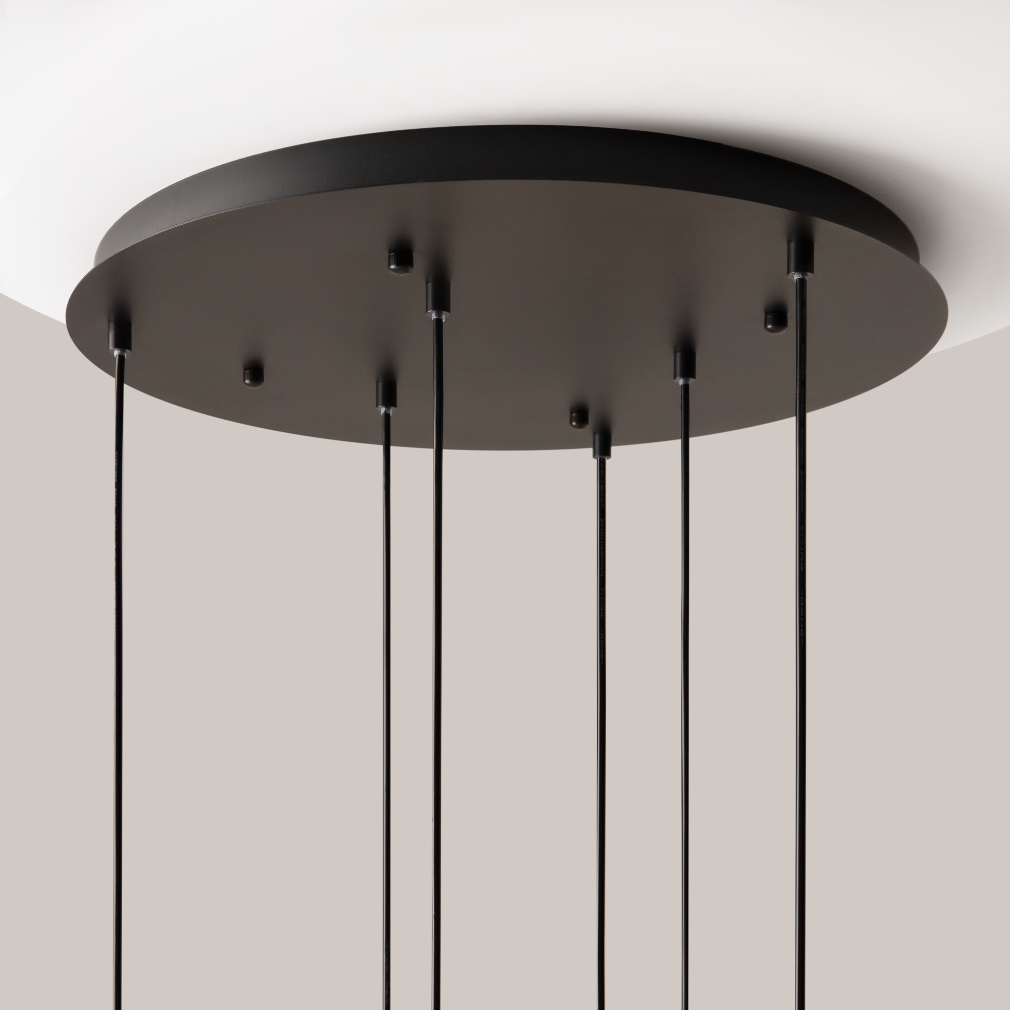 Цветовая гамма: дымчато-серый или насыщенно-янтарный цвет стекла в сочетании с черной или золотой арматурой. В серии есть модели светильников со сменным источником света с цоколем Е27 (каскадная композиция, потолочный и настольные светильники) и LED-источником (одинарные подвесные светильники). Температура свечения LED – 3000 К, угол рассеивания — 120 градусов. Плафоны каскадной композиции плафоны разных размеров и оттенков, установленные на одно основание. Оригинальный декор — актуальный вариант современной классики.