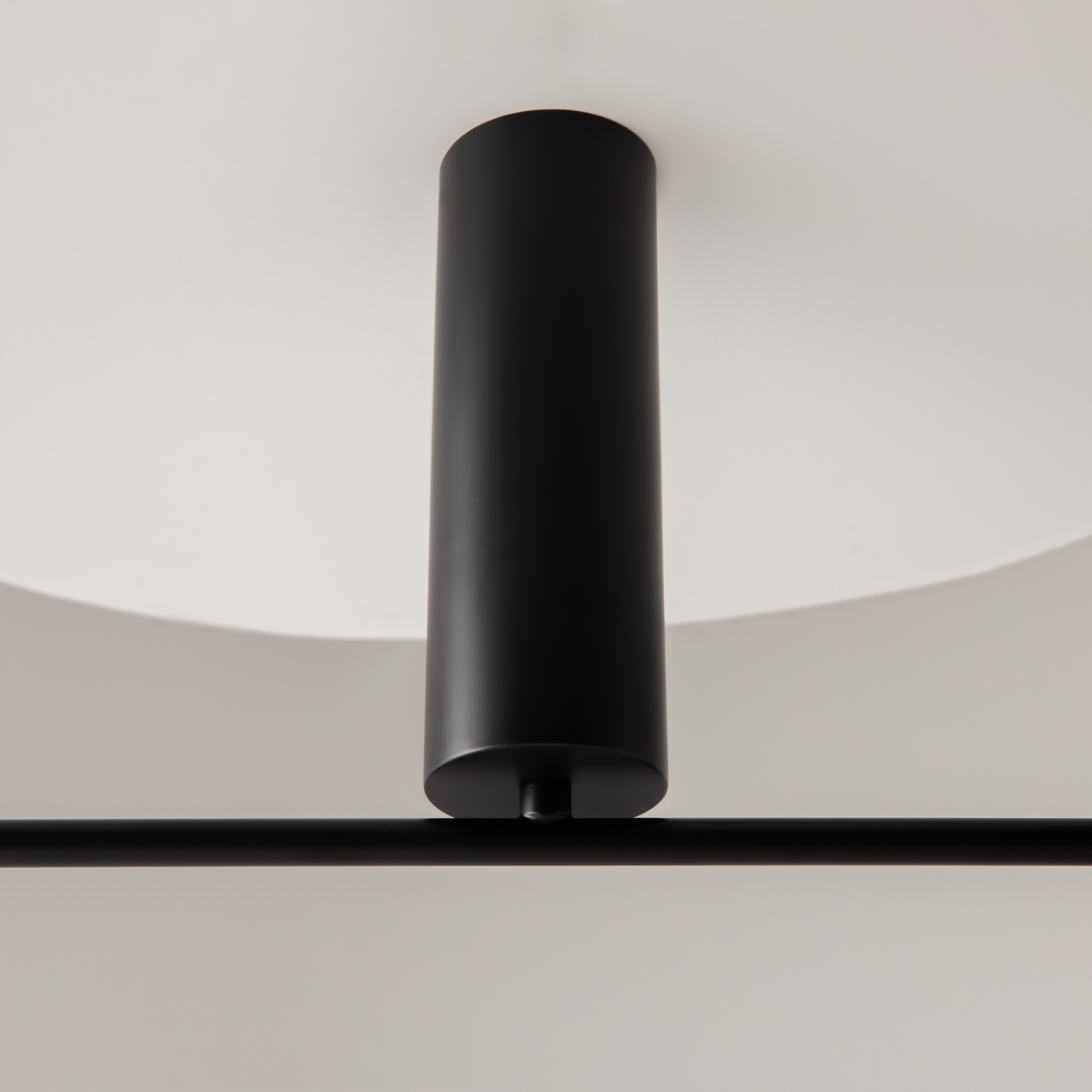 Плафоны и арматура из металла. Цвет рассеивателя — белый, арматура черная или белая. Конструкция предусматривает шарнирный механизм, позволяющий регулировать направление света и высоту светильников. Плафоны вращаются на 90 и 360° (в вертикальной и горизонтальной плоскостях). Угол рассеивания — 120 градусов. Тип света — рассеянный.