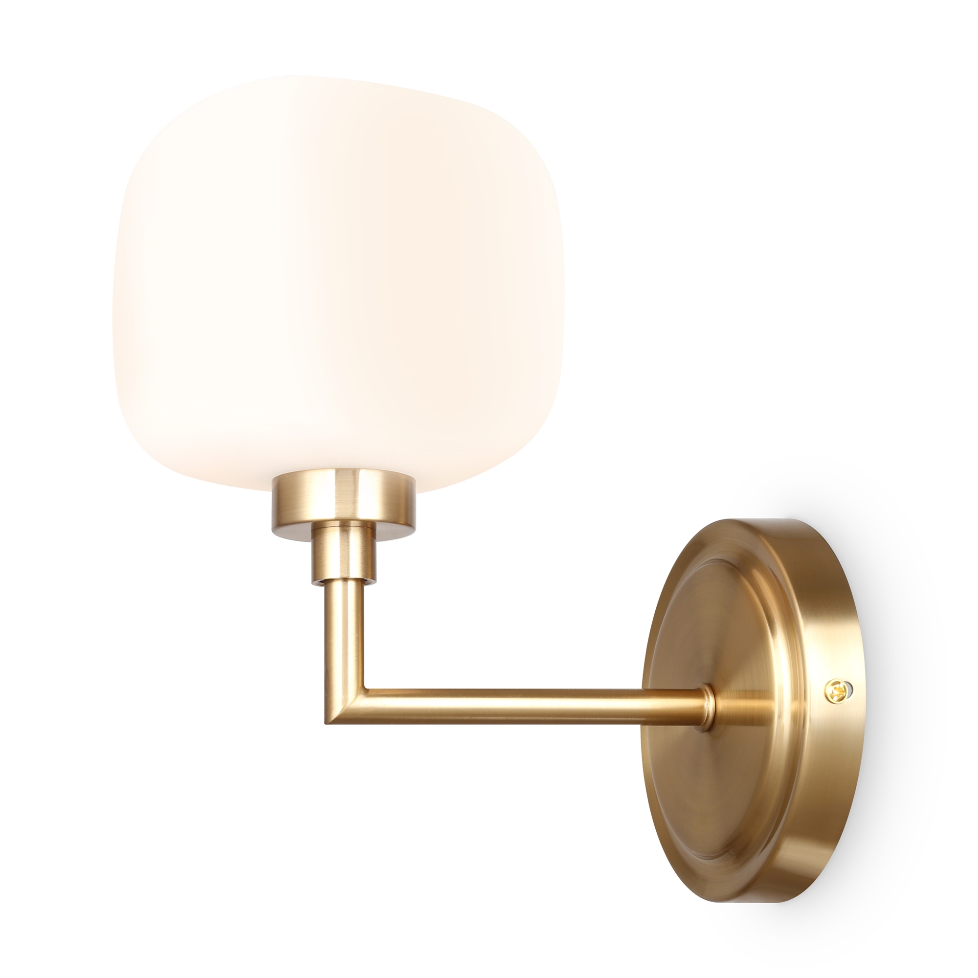 Металлическая графичная арматура цвета латунь. Плафоны из белого матового стекла в необычной форме округлых кубов - закреплены на разной по высоте комбинации. Мягкое равномерное освещение. Источником света служит лампа с цоколем G9.