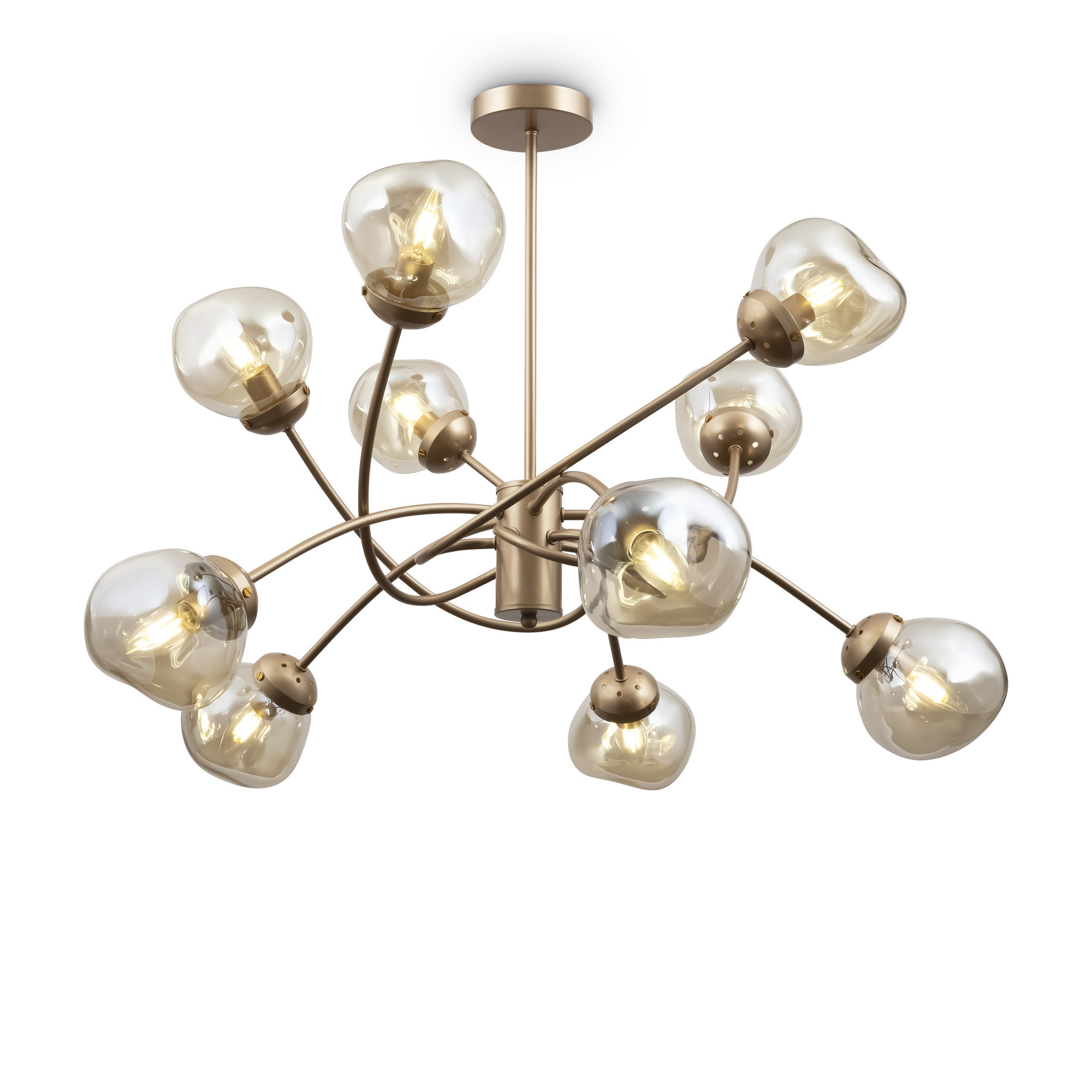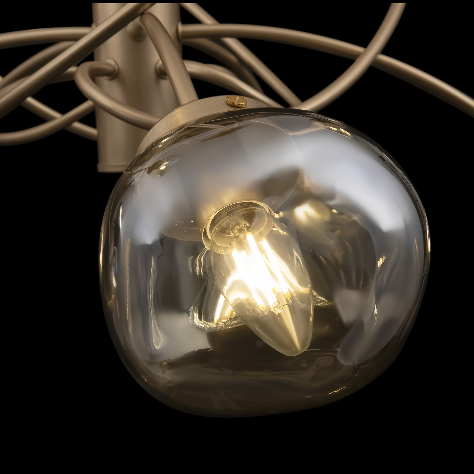 Динамика, скорость и ритм шумного мегаполиса отражены в сложных формах светильников Volani. Такой эффект достигается за счет конструктивных особенностей: рожки изогнуты под необычным углом, переплетаются друг с другом. Дизайнерское решение выгодно и с практической точки зрения: разнонаправленный световой поток обеспечивает равномерное и яркое освещение. Арматура из металла цвета матового золота идеально гармонирует с янтарными стеклянными плафонами. Теплая цветовая гамма добавит интерьеру уюта. Оригинальная форма плафонов поддерживает идею динамичного, движущегося дизайна. Наличие в серии люстр на 6, 8 и 10 ламп позволяет выбрать оптимальную мощность и интенсивность подсветки, исходя из размеров помещения. Завершить и дополнить световую инсталляцию поможет бра. Для интерьеров в стиле лофт, хай-тек, минимализм, mid-century modern серия Volani станет идеальным решением.