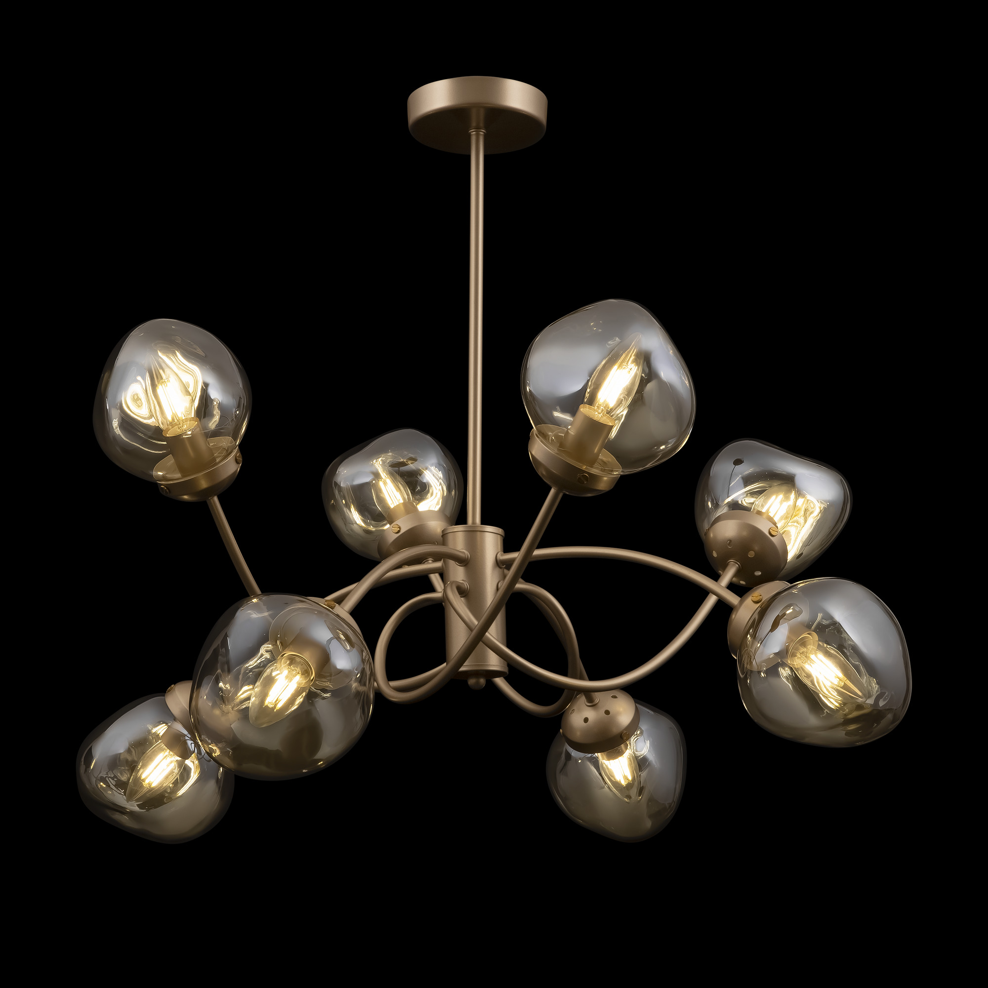 Динамика, скорость и ритм шумного мегаполиса отражены в сложных формах светильников Volani. Такой эффект достигается за счет конструктивных особенностей: рожки изогнуты под необычным углом, переплетаются друг с другом. Дизайнерское решение выгодно и с практической точки зрения: разнонаправленный световой поток обеспечивает равномерное и яркое освещение. Арматура из металла цвета матового золота идеально гармонирует с янтарными стеклянными плафонами. Теплая цветовая гамма добавит интерьеру уюта. Оригинальная форма плафонов поддерживает идею динамичного, движущегося дизайна. Наличие в серии люстр на 6, 8 и 10 ламп позволяет выбрать оптимальную мощность и интенсивность подсветки, исходя из размеров помещения. Завершить и дополнить световую инсталляцию поможет бра. Для интерьеров в стиле лофт, хай-тек, минимализм, mid-century modern серия Volani станет идеальным решением.