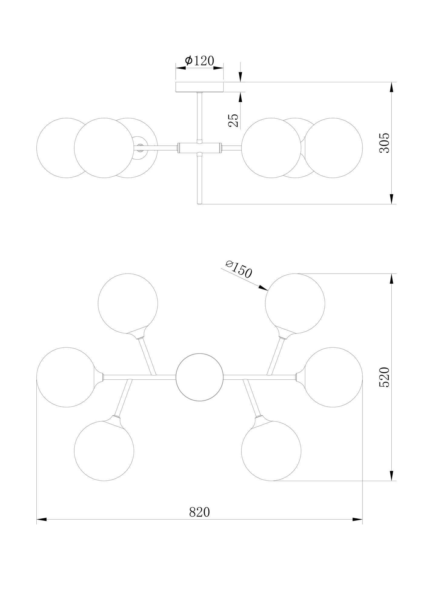 Материал арматуры – металл. Цвет – золотая бронза. Плафоны сферической формы. Материал – прозрачное дутое стекло. Регулируемое крепление плафонов позволяет менять дизайн и направление светового потока. Источник света – лампа G9.