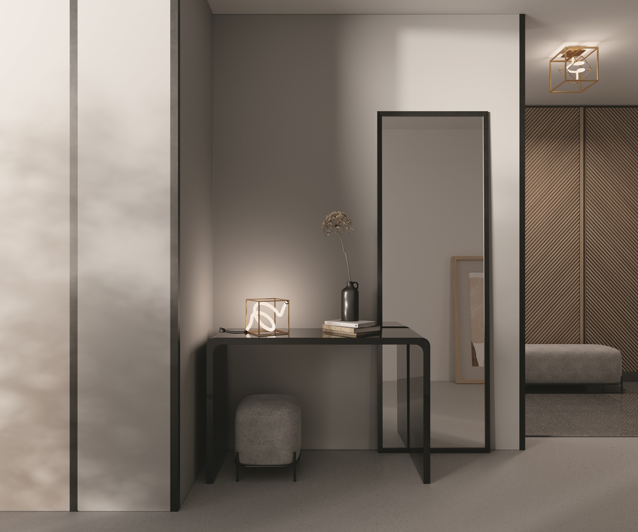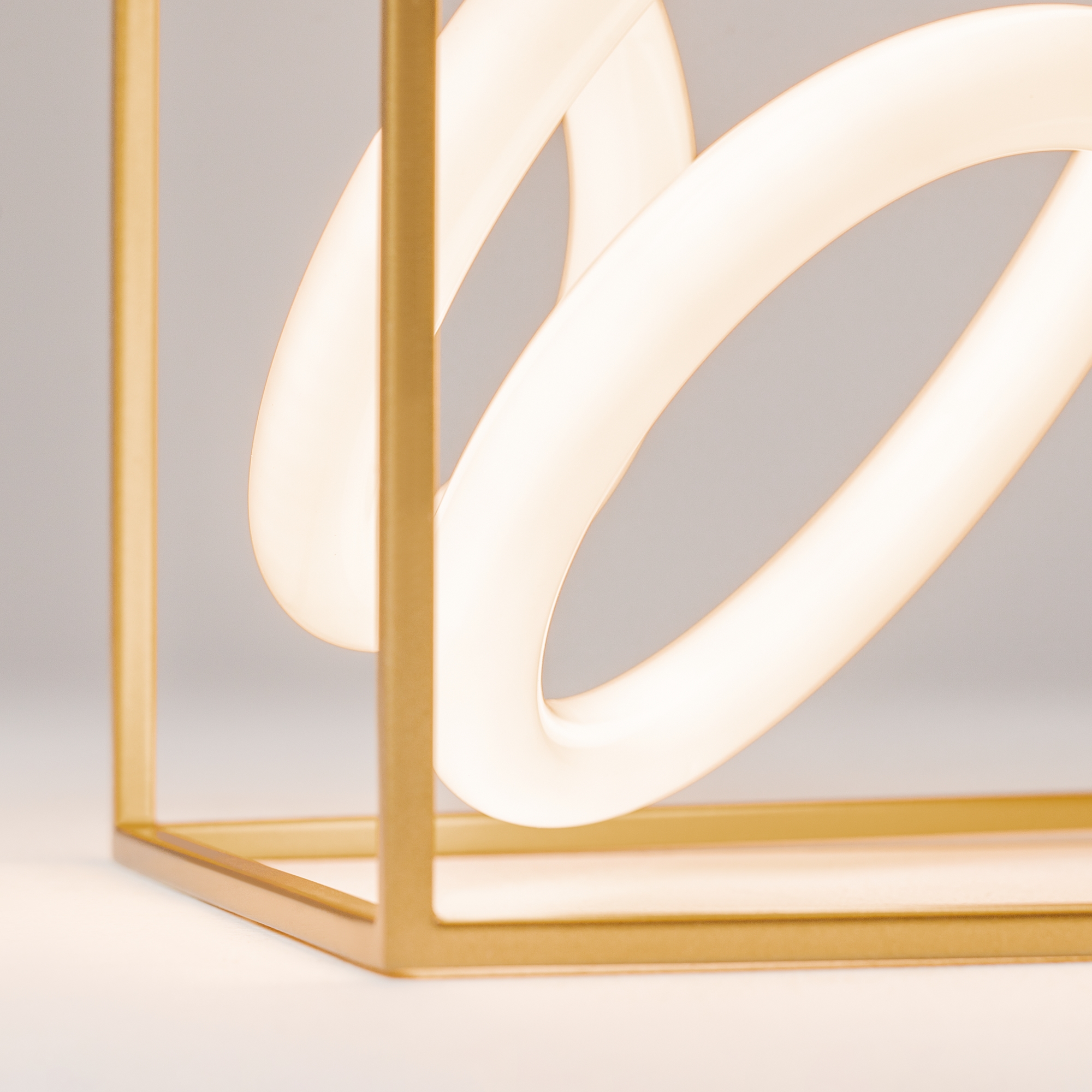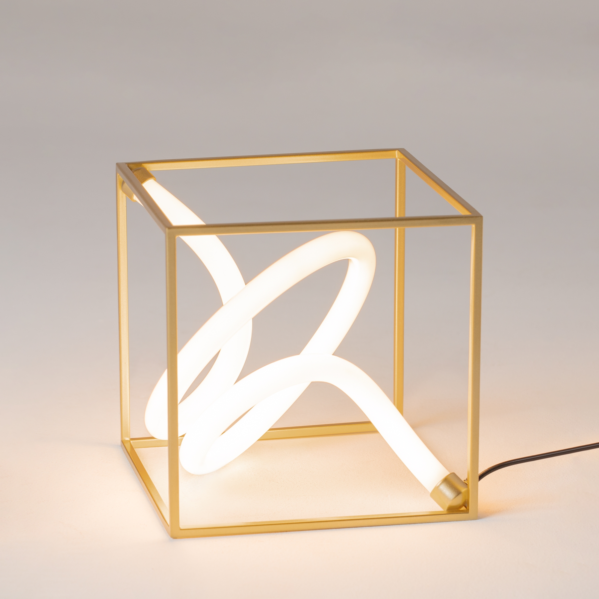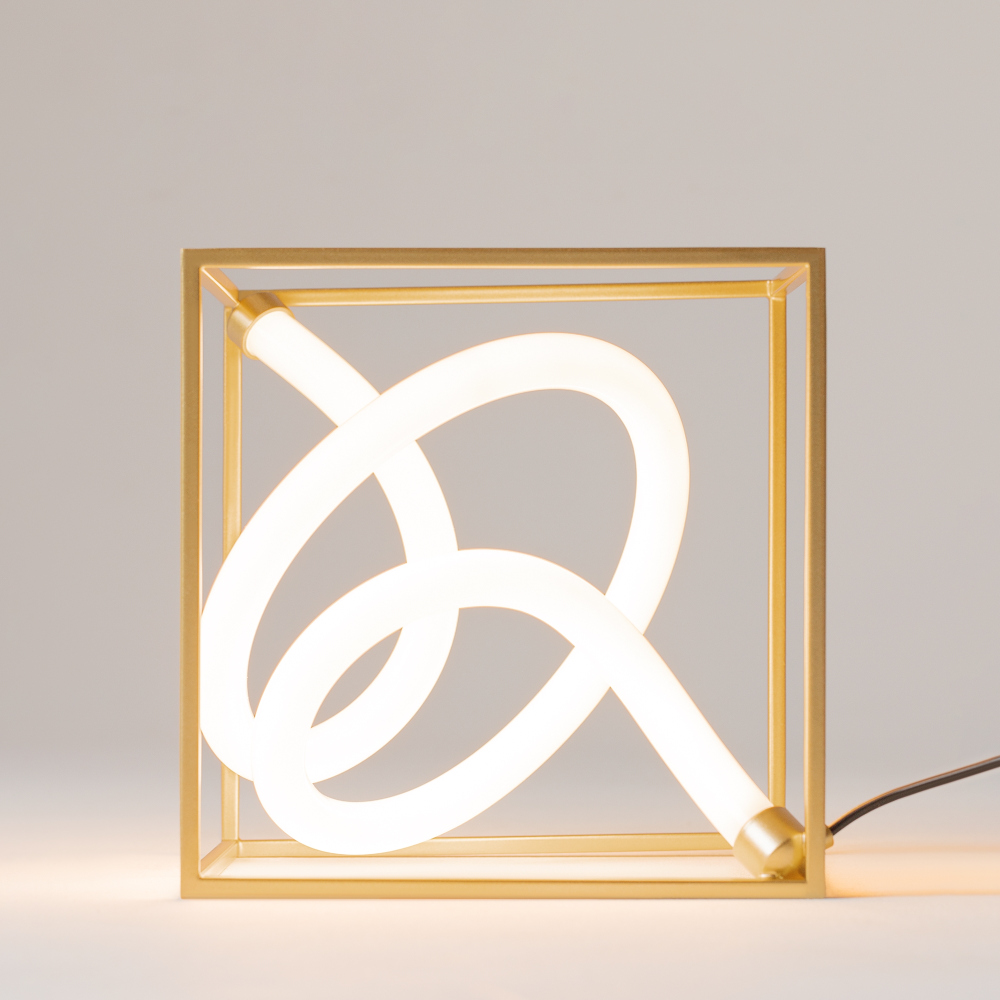 Металлическая арматура, цвет - латунь. Графичный силуэт. Источник света - гибкая неоновая трубка, расположенная внутри арматуры. Угол рассеивания — 120 градусов. Дизайн светильников подходит для интерьера в стиле лофт, а также индустриального стиля. Регулируемый провод подвесного светильника — 3 м.