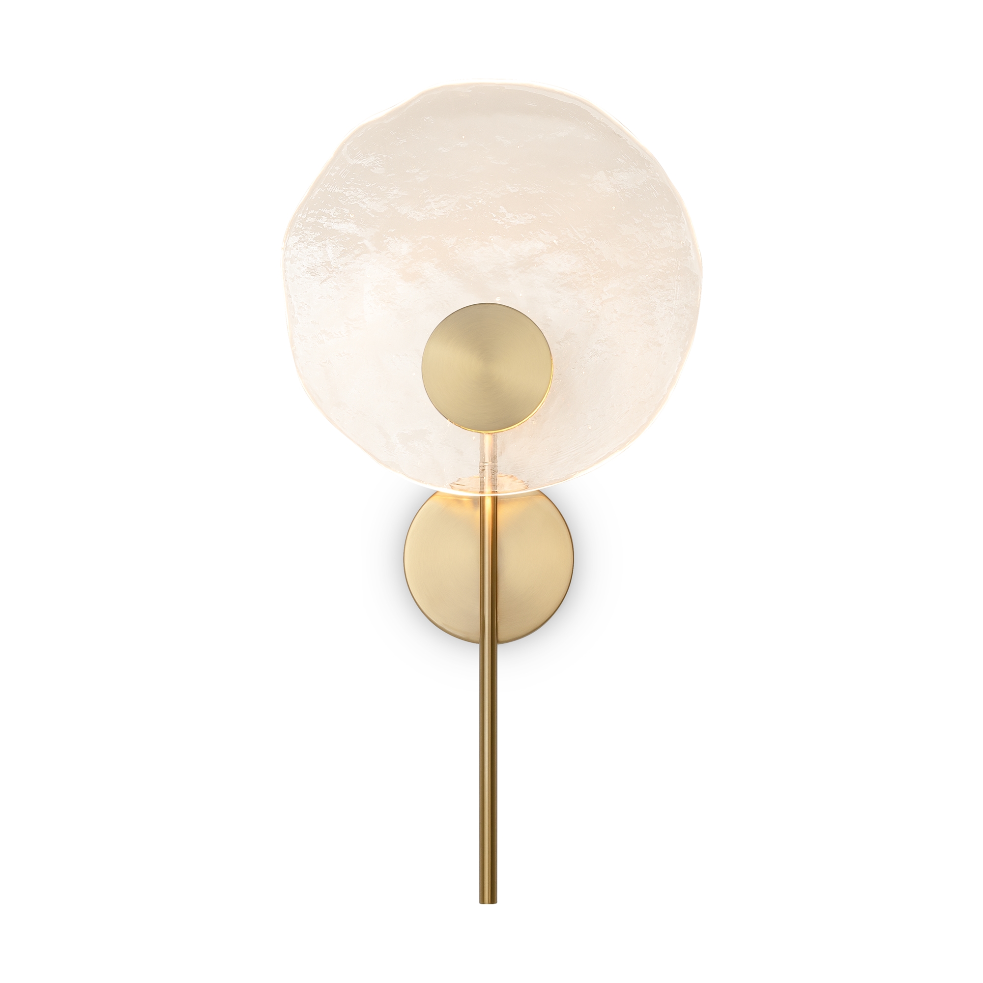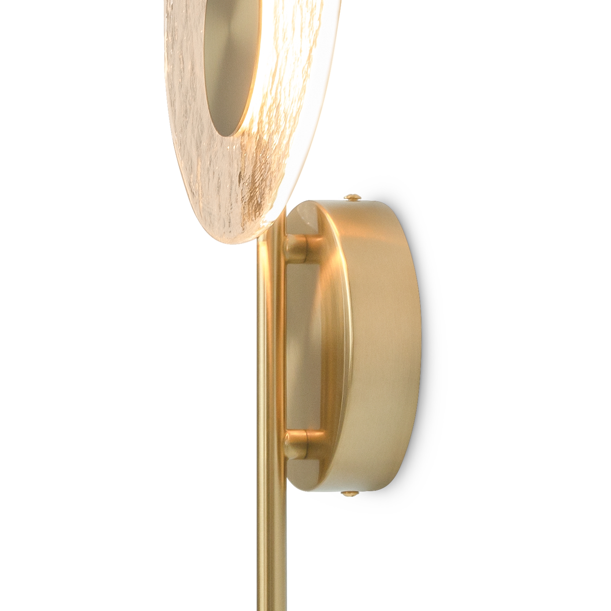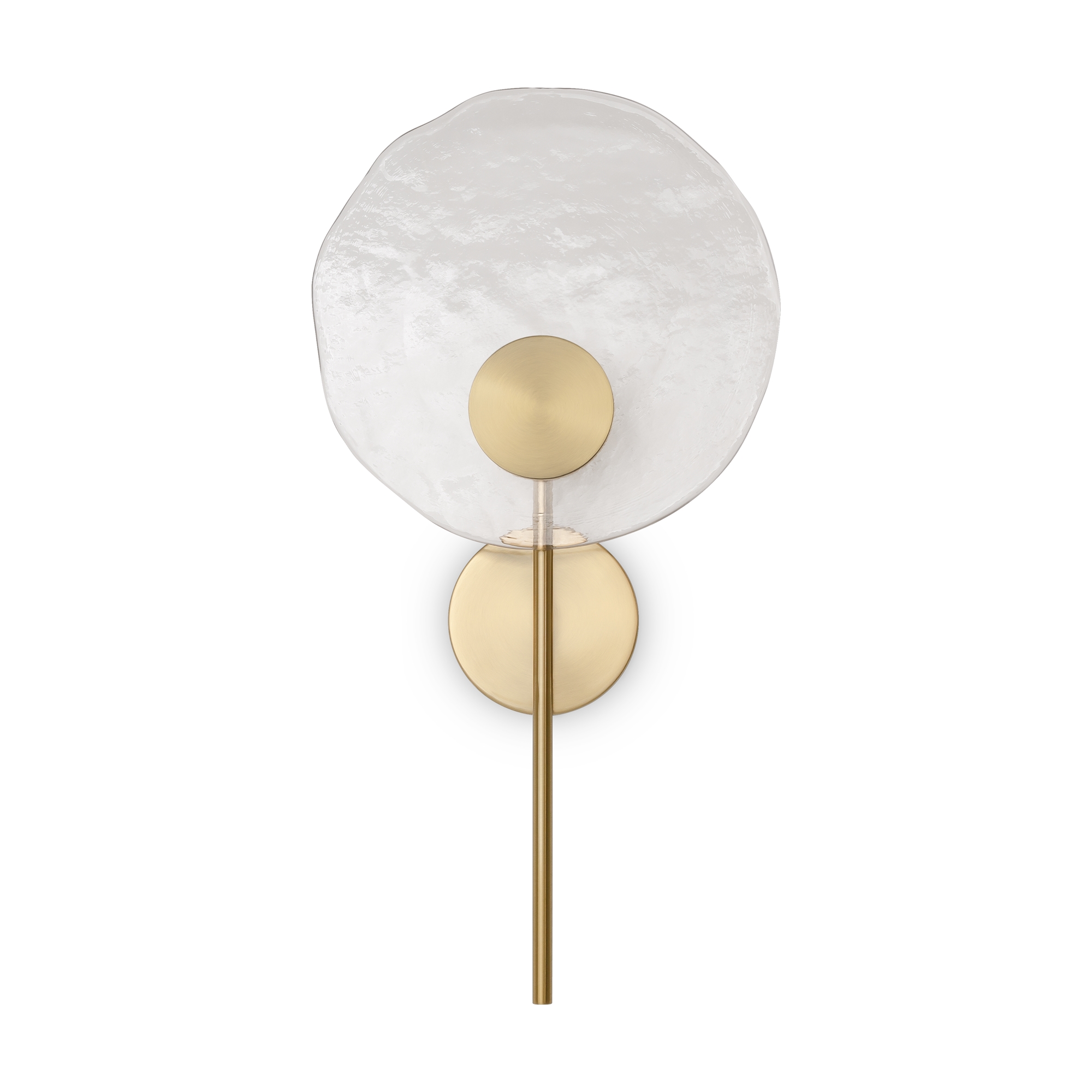 Материал арматуры — металл, цвет — латунь. Настенные светильники оснащены LED-источником света с цветовой температурой 2700К. Уникальное стекло ручного производства обеспечивает равномерное свечение всей поверхности плафона. Для достижения наилучшего светового эффекта рекомендуется использовать в сочетании с основными источниками света.