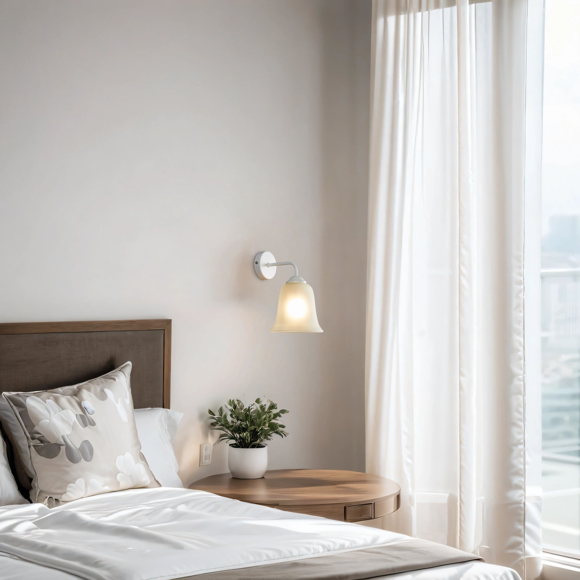 Металлическая арматура оттенка матового золота. Двойные стеклянные плафоны: матовые внутри и прозрачные снаружи. Плафоны закреплены на окружности, что обеспечивает равномерное освещение. Источник света – лампа с цоколем G9.