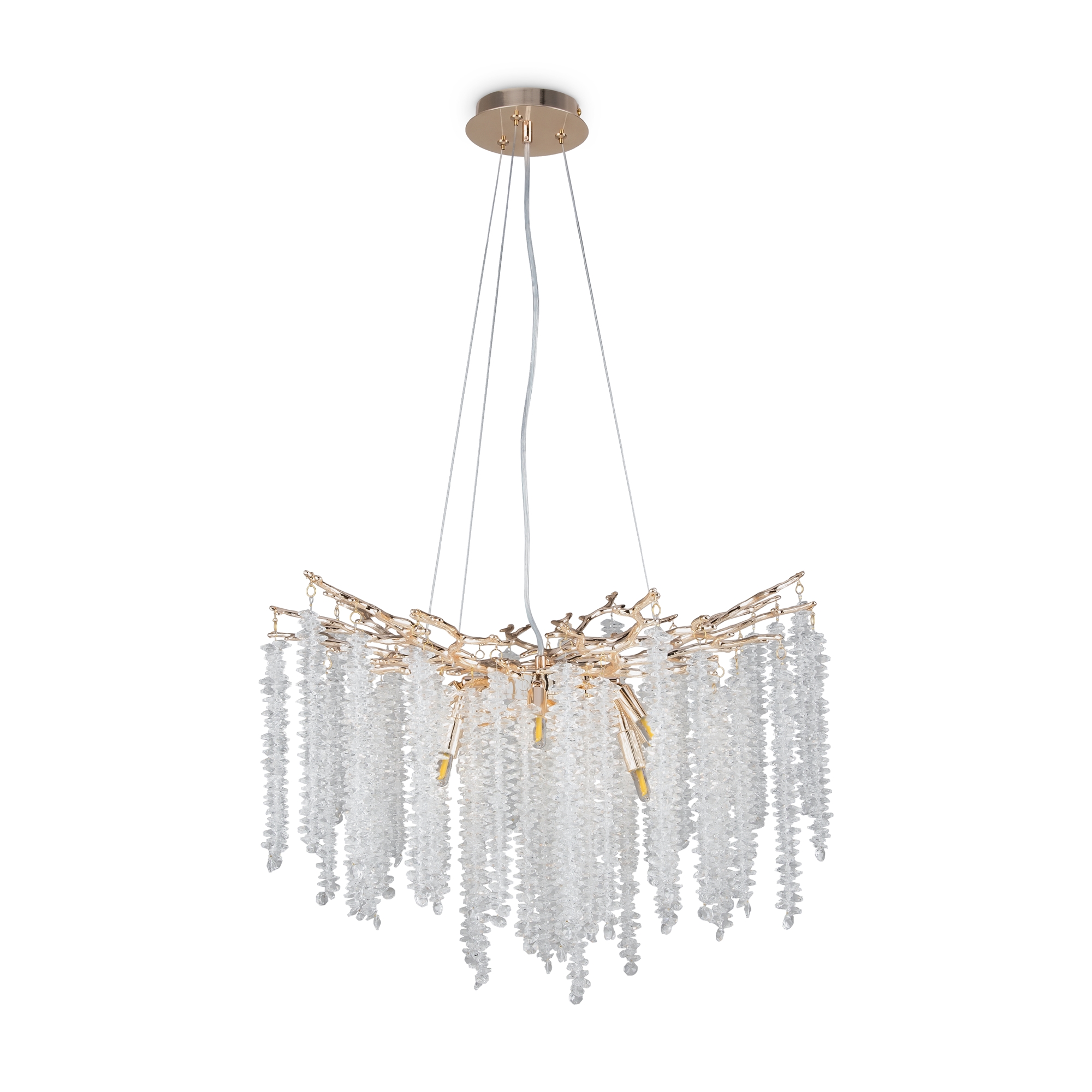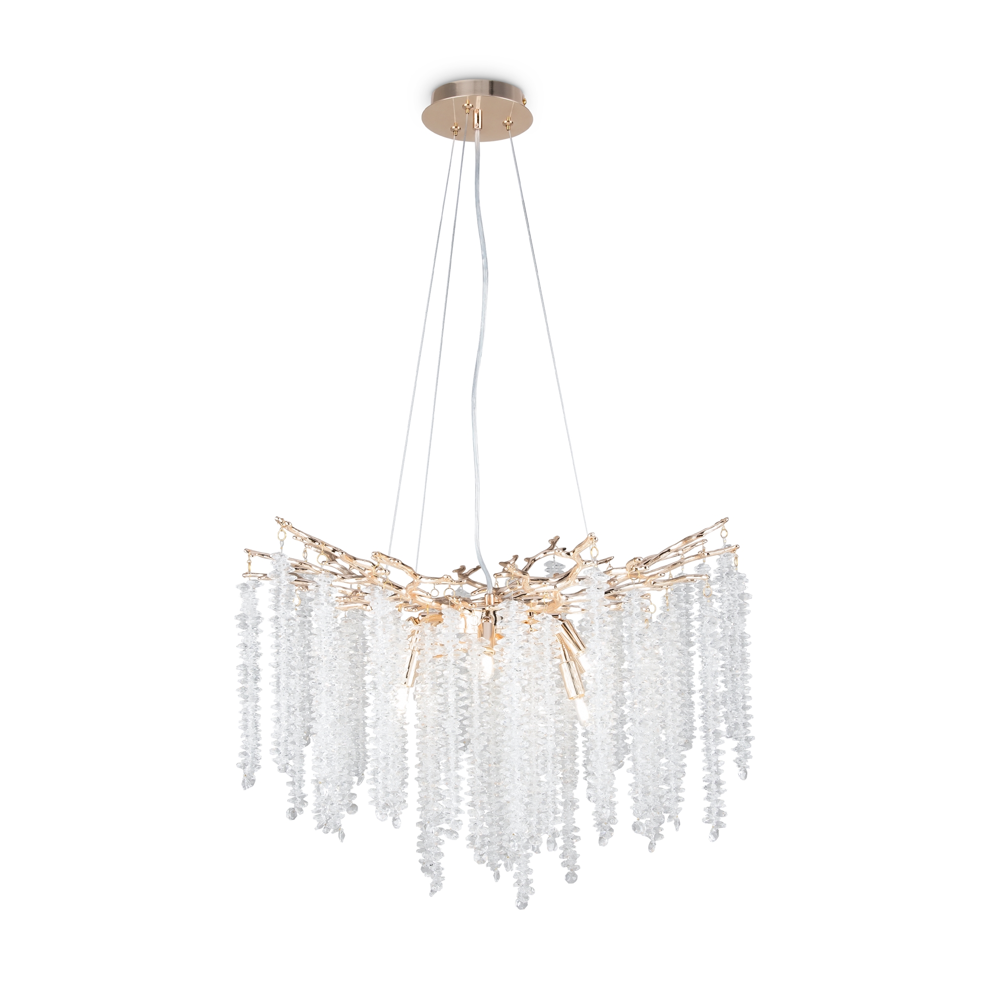 Материалы арматуры —металл, цвет — золото. Хрустальные декоративные элементы напоминают капельки - создают глубокие переливы света. Дизайн в трендовой растительной тематике. Источник света — лампа с цоколем G9 и с поворотной функцией.