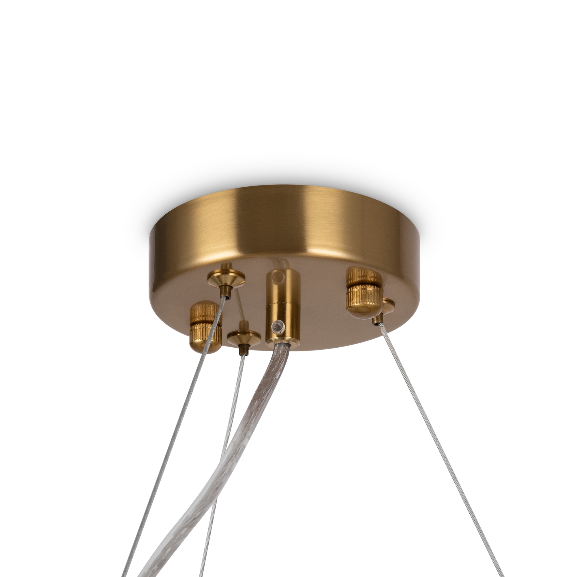 Арматура из металла. Цвет – латунь и никель. Стеклянный декор в двух вариантах: фактурный с эффектом «замороженного стекла» и глянцевый дымчатого оттенка. Источник света – лампа G9.