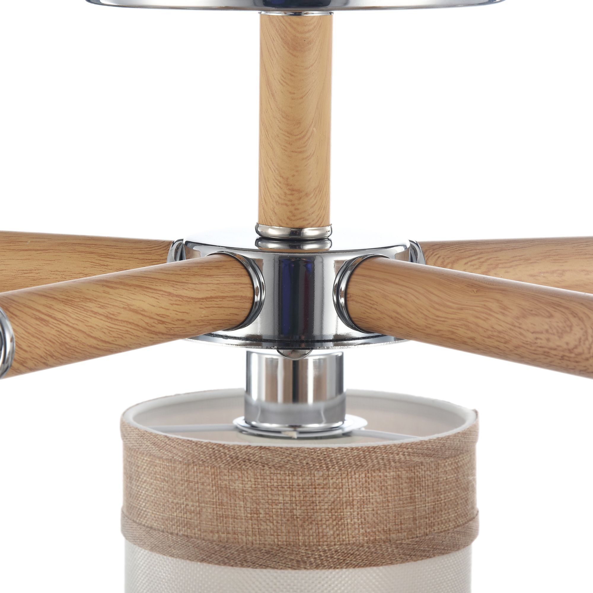 Двухцветные абажуры, сделанные из мешковины, сочетаются с древесной арматурой. Благодаря большому ассортименту изделий серии Helen легко выбрать светильник как для просторных помещений, так и для небольших.